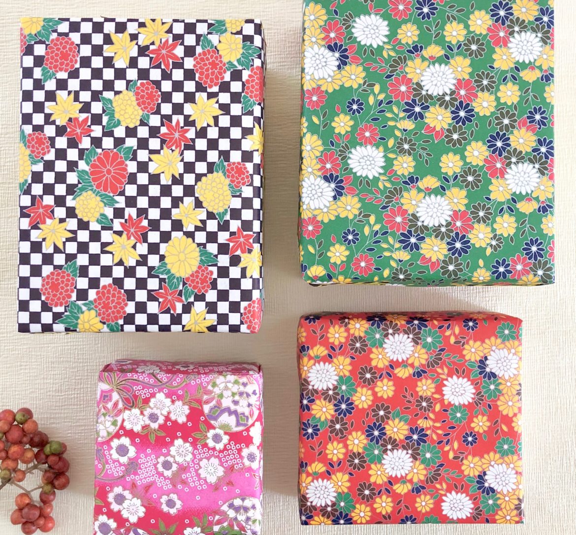 4種類の和紙でシンプルに包んだ、柄の美しさが際立つラッピングです。
