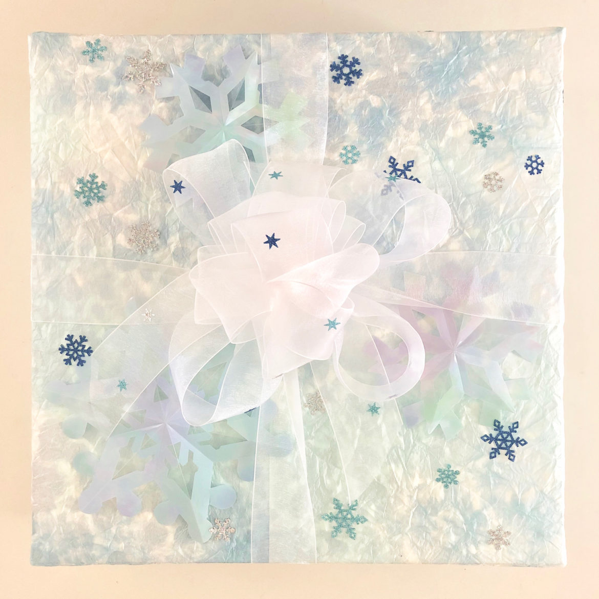 今回は透け感のある和紙にオーガンジーのリボン、ギフトボックスも透明なものにすることで