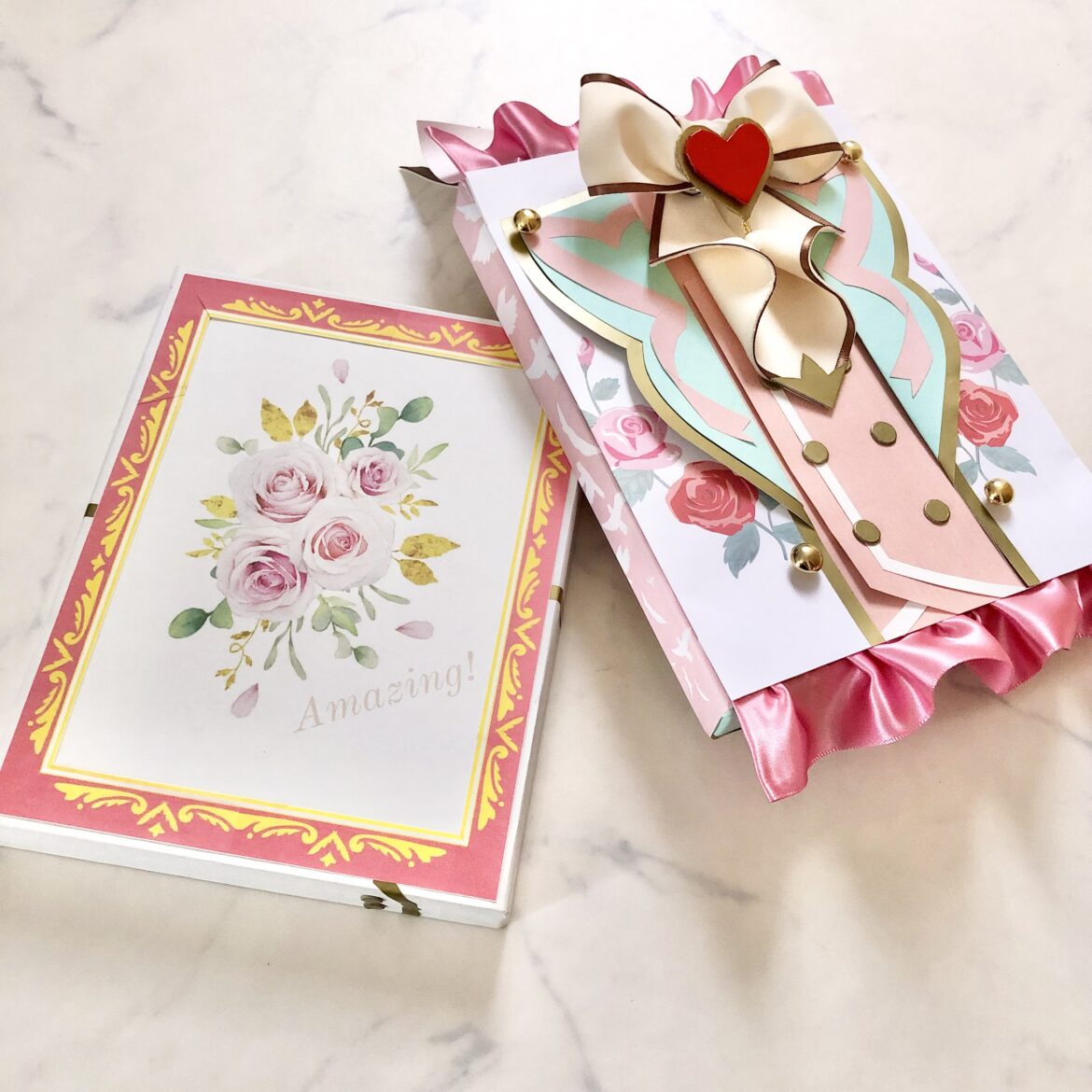 箱の底面には、お花と「Amazing!」の文字入れをご希望だったので、ステージらしさも感じる縁取りとお花にしてみました。
