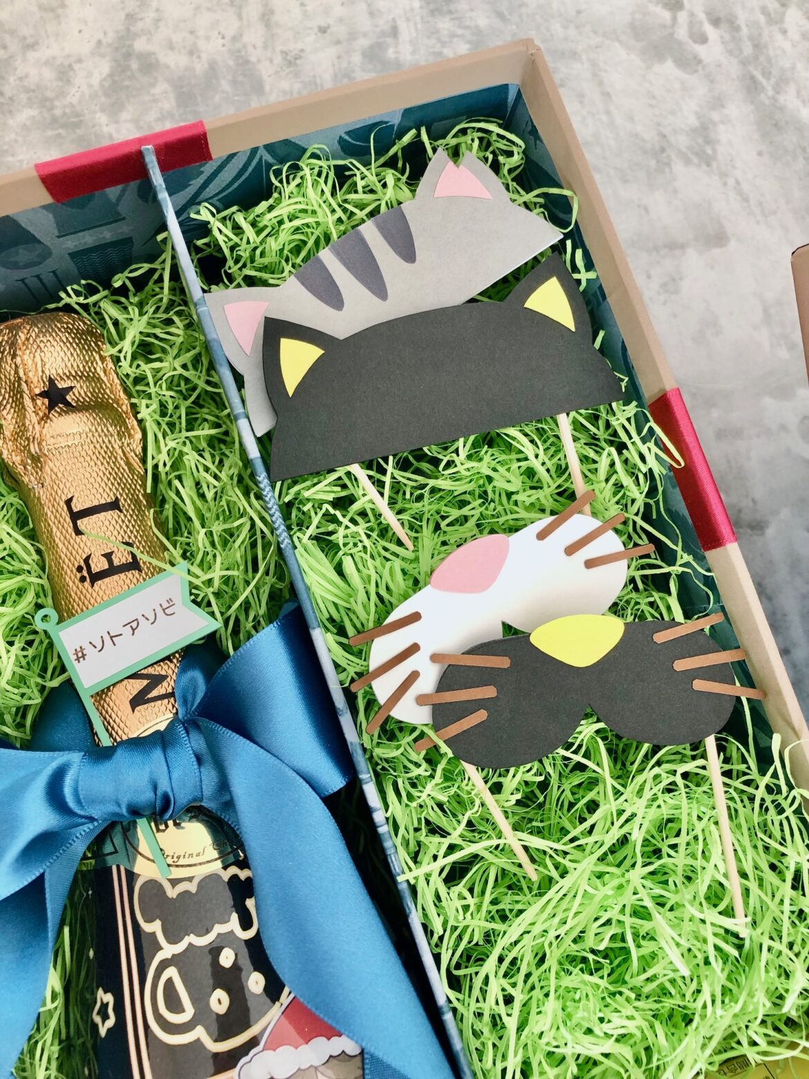 手作りのフォトプロップスをお付けしたワインのラッピングです。